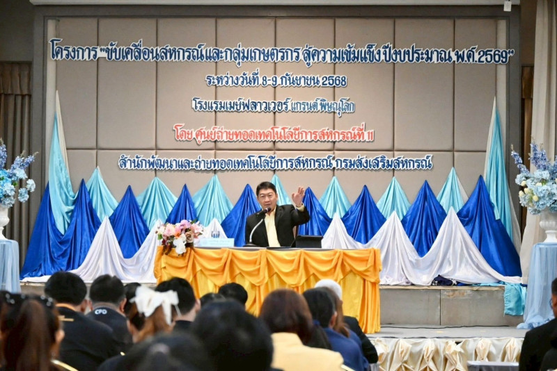 วันที่ 8 กันยายน 2568 นางสาวอภิวันท์ ธะนะสิทธิศักดิ์ สหกรณ์จังหวัดเชียงใหม่ พร้อมคณะ เข้าร่วมโครงการสัมมนา “การขับเคลื่อนสหกรณ์และกลุ่มเกษตรกรสู่ความเข้มแข็ง ปีงบประมาณ พ.ศ. 2569“ ณ ห้องพิจิตรา แกรนด์ บอลรูม โรงแรมเมย์ฟลาวเวอร์ แกรนด์ อำเภอเมืองพิษณุโลก จังหวัดพิษณุโลก โดยมี นายวิศิษฐ์ ศรีสุวรรณ์ อธิบดีกรมส่งเสริมสหกรณ์ เป็นประธาน และบรรยายพิเศษในหัวข้อ “การถ่ายทอดประสบการณ์การส่งเสริมและกำกับสหกรณ์“ มุ่งสร้างทิศทางการส่งเสริมสหกรณ์และกลุ่มเกษตรกร ตลอดจนวางแนวทางการขับเคลื่อนสหกรณ์และกลุ่มเกษตรกรให้เกิดความเข้มแข็งอย่างเป็นรูปธรรม โดยคาดหวังให้ผู้เข้าร่วมสัมมนานำความรู้และประสบการณ์ที่ได้รับไปประยุกต์ใช้ในการปฏิบัติงาน เพื่อยกระดับศักยภาพการดำเนินงานของสหกรณ์และกลุ่มเกษตรกรให้มีความเข้มแข็งและยั่งยืน โดย นายสันทาน สีสา รองอธิบดีกรมส่งเสริมสหกรณ์, นางสาวปรานอม จันทร์ใหม่ ผู้เชี่ยวชาญ รักษาการในตำแหน่ง ผู้ทรงคุณวุฒิด้านการสหกรณ์, คณะผู้บริหาร และเจ้าหน้าที่กรมส่งเสริมสหกรณ์ เข้าร่วม