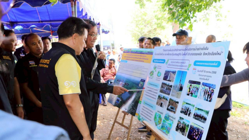 วันที่ 7 มีนาคม 2569 นายนเรศ ธำรงค์ทิพยคุณ รัฐมนตรีช่วยว่าการกระทรวงเกษตรและสหกรณ์ ลงพื้นที่เพื่อติดตามโครงการอนุรักษ์ดินและน้ำ บ้านวังธารทองและบ้านสันหิน ตำบลดอยหล่อ อำเภอดอยหล่อ จังหวัดเชียงใหม่ เน้นแก้ปัญหาภัยแล้งอย่างยั่งยืน โดยมอบหมายให้กรมพัฒนาที่ดินเข้ามาบริหารจัดการพื้นที่กว่า 1,000 ไร่ซึ่งอยู่นอกเขตชลประทาน โดยมีนายณฤทธิ์ บุญชัย รองอธิบดีกรมส่งเสริมสหกรณ์ นายคัมภีร์ นับแสง สหกรณ์จังหวัดเชียงใหม่ และหัวหน้าส่วนราชการสังกัดกระทรวงเกษตรและสหกรณ์ในจังหวัดเชียงใหม่ ร่วมให้การต้อนรับและรับฟังสถานการณ์และหาแนวทางการบริหารจัดการน้ำเพื่อสร้างความอุดมสมบูรณ์ในพื้นที่ ซึ่งพื้นที่ดังกล่าวประสบปัญหาภัยแล้งรุนแรง เนื่องจากเงาฝน (Rain Shadow) ของดอยอินทนนท์บดบังการเกิดฝน ทำให้ปริมาณฝนตกน้อย และแอ่งกักเก็บน้ำไม่เพียงพอต่อการใช้งานตลอดฤดูแล้ง ส่งผลกระทบต่อการทำเกษตรกรรมอย่างต่อเนื่องและมีประสิทธิภาพ